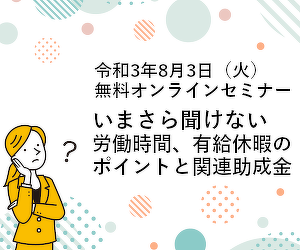 今回のテーマは「いまさら聞けない労働時間、有給休暇管理のポイントと関連助成金」です!