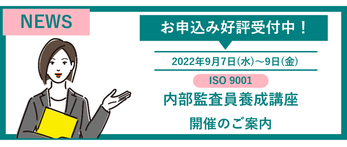 1997年1月の開講以来、多くのお客様よりご利用いただいている「ISO 9001(内部品質監査員養成)コース」の第144回講座を開催します!