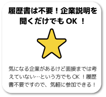 気になる企業があるけど、面接までは考えていない…という方は話しを聞くだけでもOK!面談時に履歴書の提出は不要!!