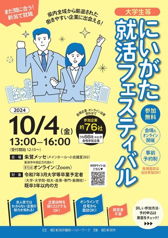 新潟県内を勤務地とする求人企業約110社が参加する大学生等向けの就職面接会です。